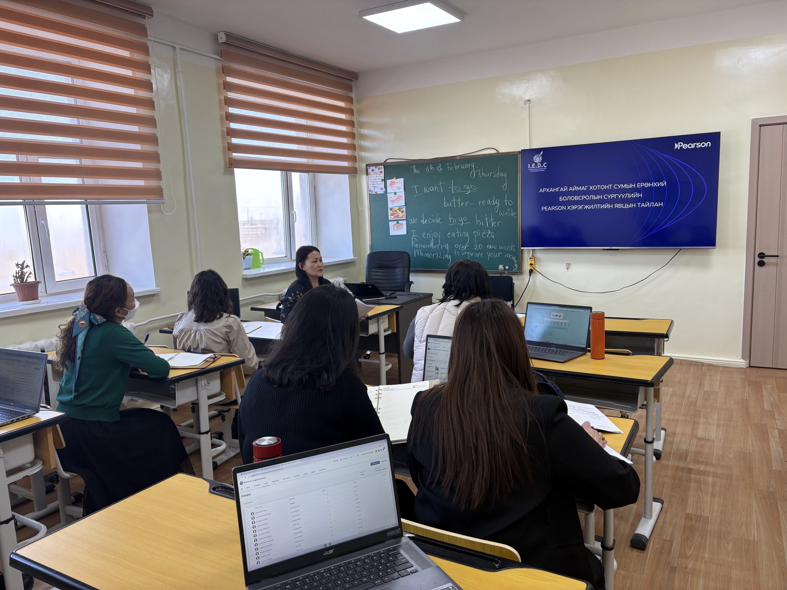 Иймээс тус хөтөлбөрийг хэрэгжүүлж буй IEDC–Pearson partner Mongolia болон Боловсролын ерөнхий газрын хамтарсан баг 2025 оны 2 дугаар сарын 2–5-ны өдрүүдэд Архангай аймагт ажиллаж, Pearson англи хэлний сургалтын цогц хөтөлбөрийн хэрэгжилттэй танилцах, зөвлөн туслах, мэдээлэл өгөх үйл ажиллагааг зохион байгууллаа.