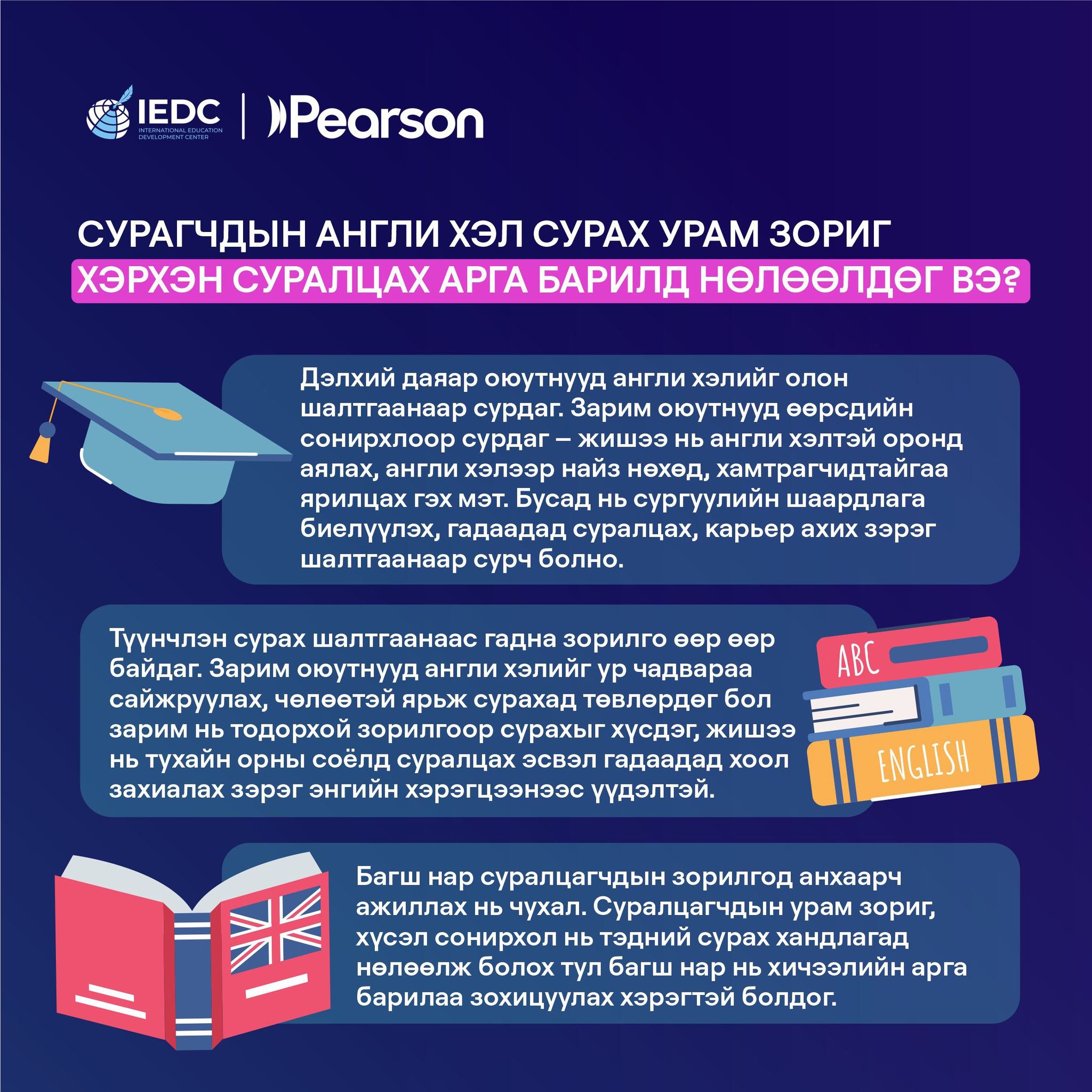 Сурагчдын англи хэл сурах урмыг нэмэгдүүлэх нь тэдний суралцах арга барил, идэвх оролцоонд эерэгээр нөлөөлдөг. Урам зоригтой сурагчид илүү идэвхтэй суралцаж, хэлний чадвараа илүү хурдан хөгжүүлдэг байна