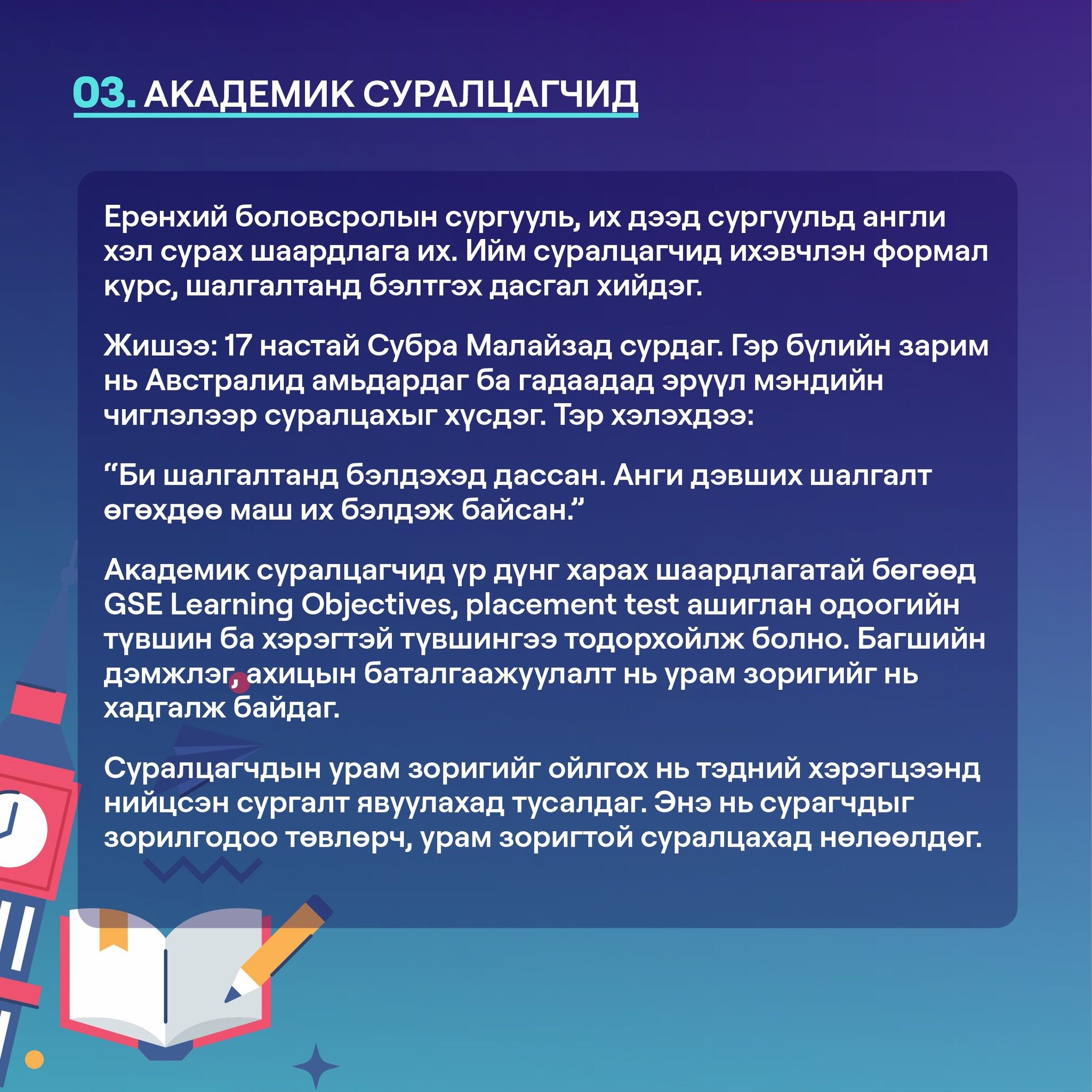 Боловсролын хөтөлбөр, олон улсын шалгалт, сургалт, багшийн хөгжлийн зөвлөх үйлчилгээ үзүүлэгч байгууллага